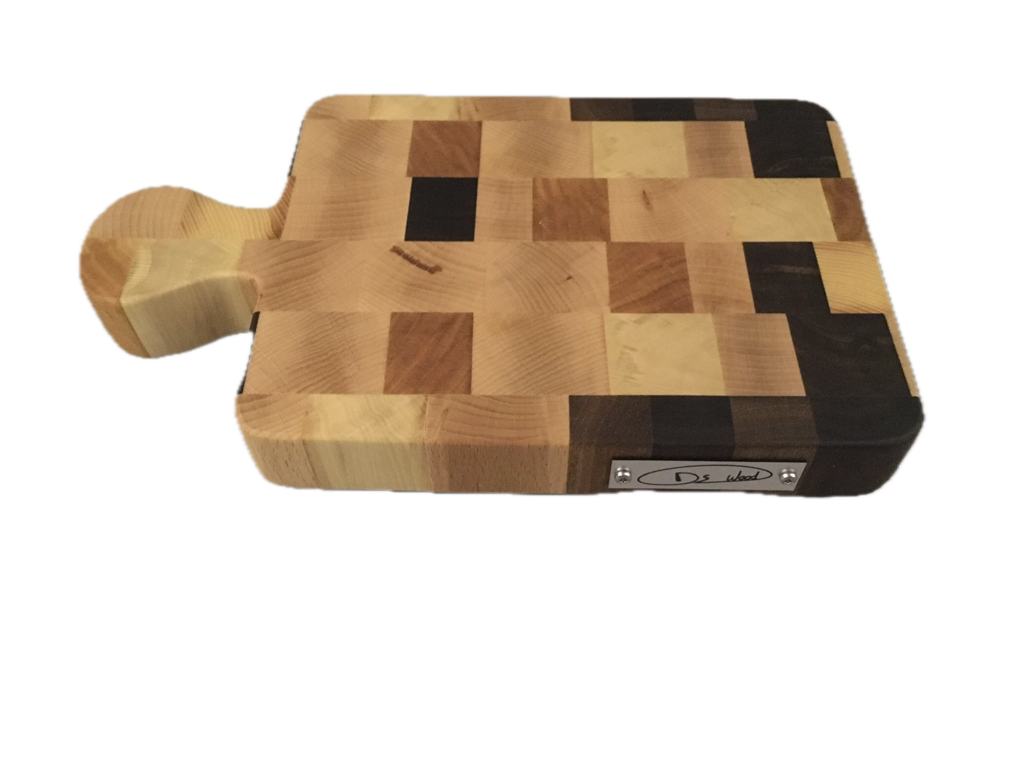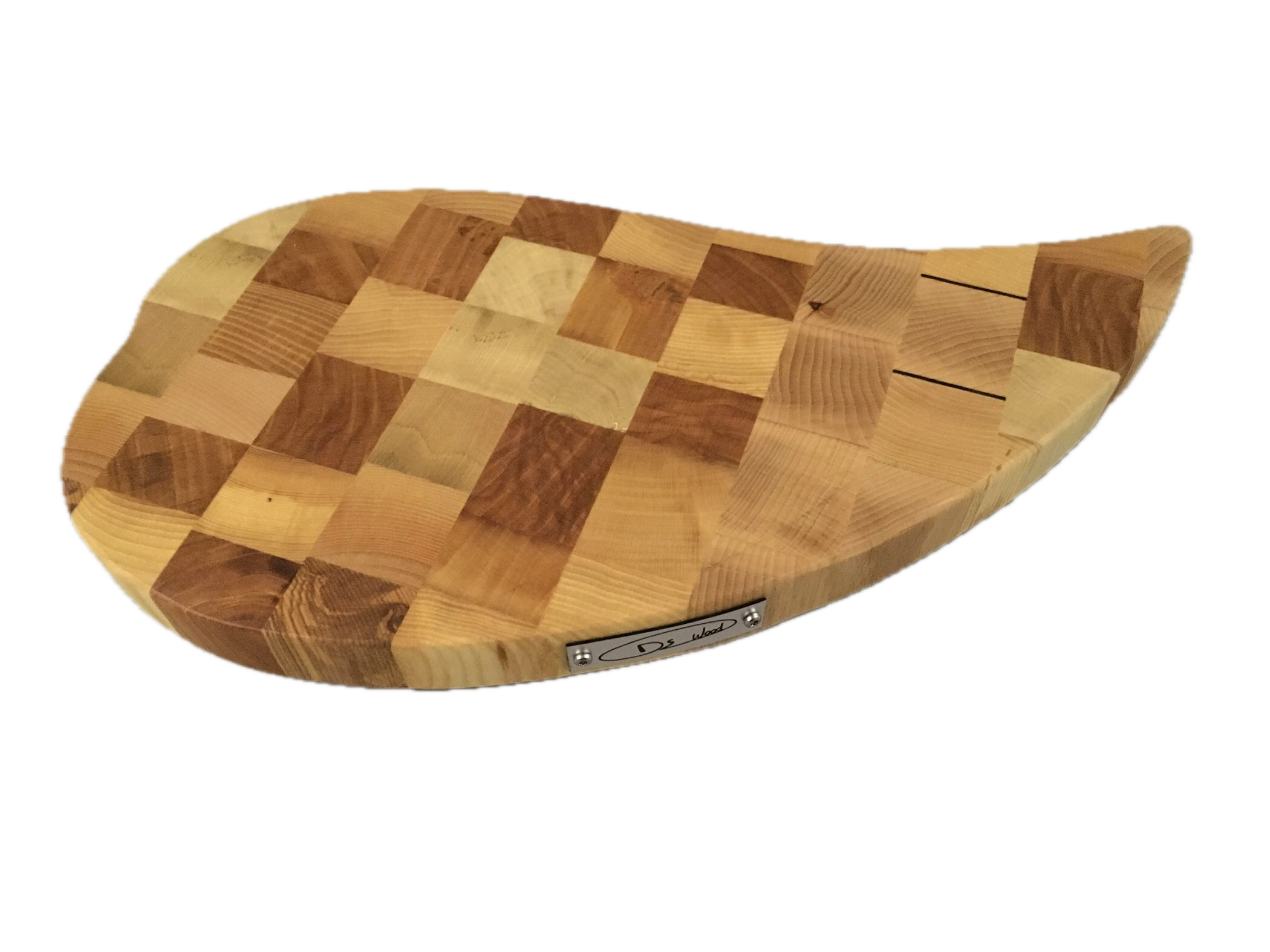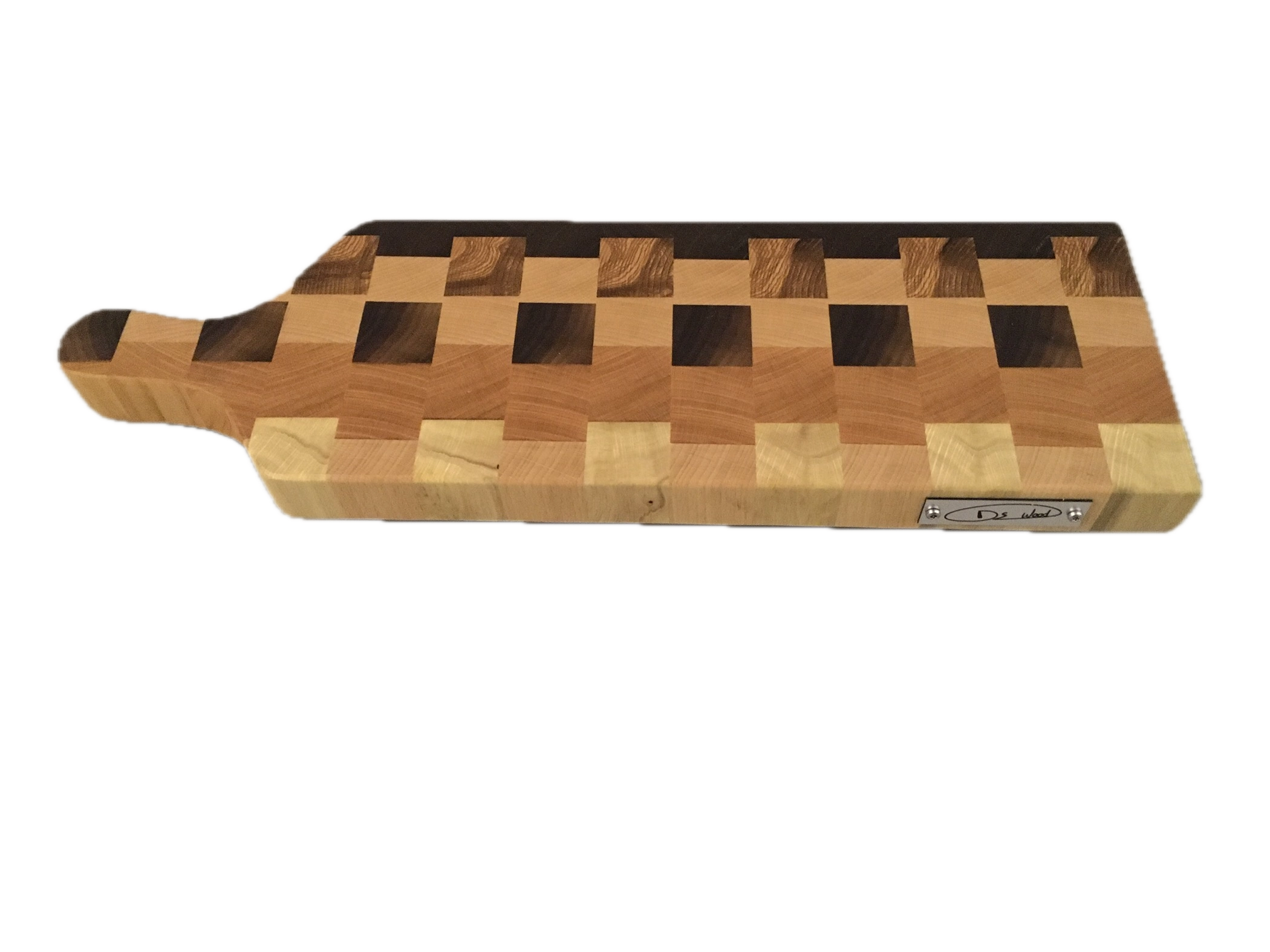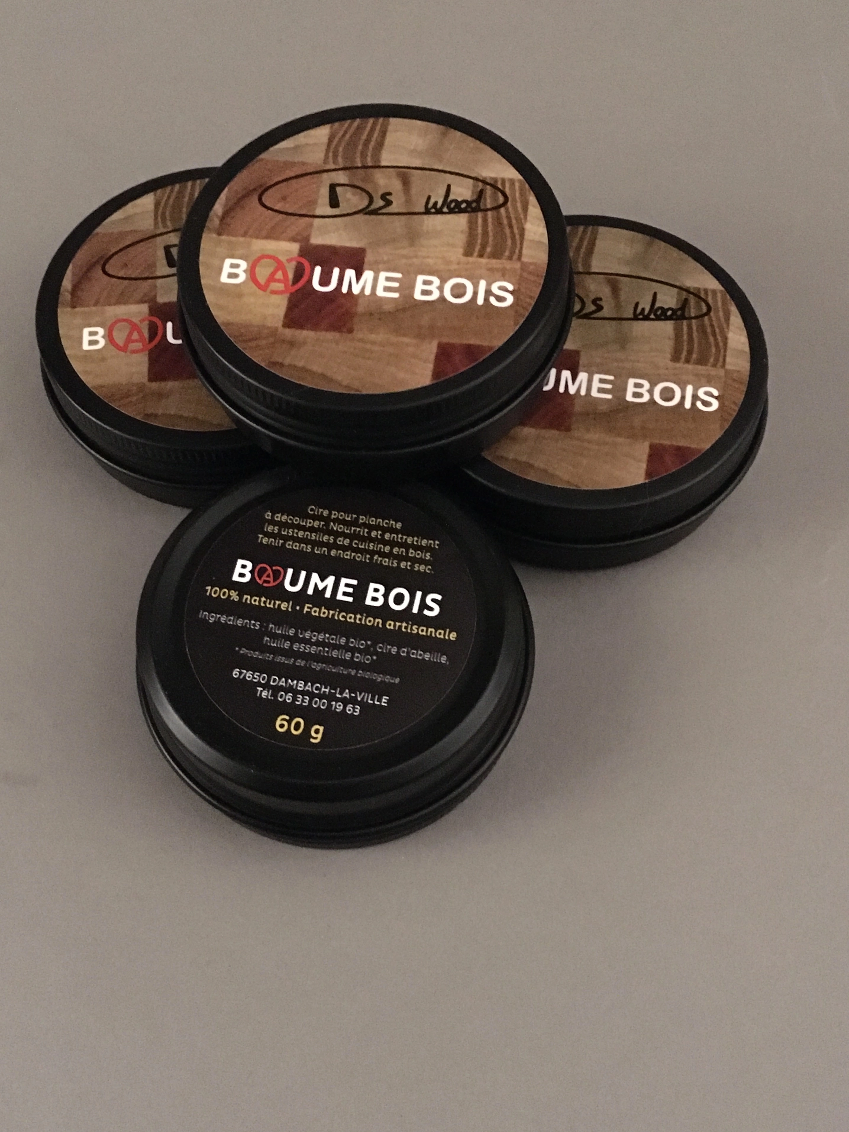 Pièce unique façonnée à la main en Alsace. Assemblage 5 essences (hêtre, frêne, charme, cerisier, noyer noir et filet de marqueterie) avec finitions naturelles.