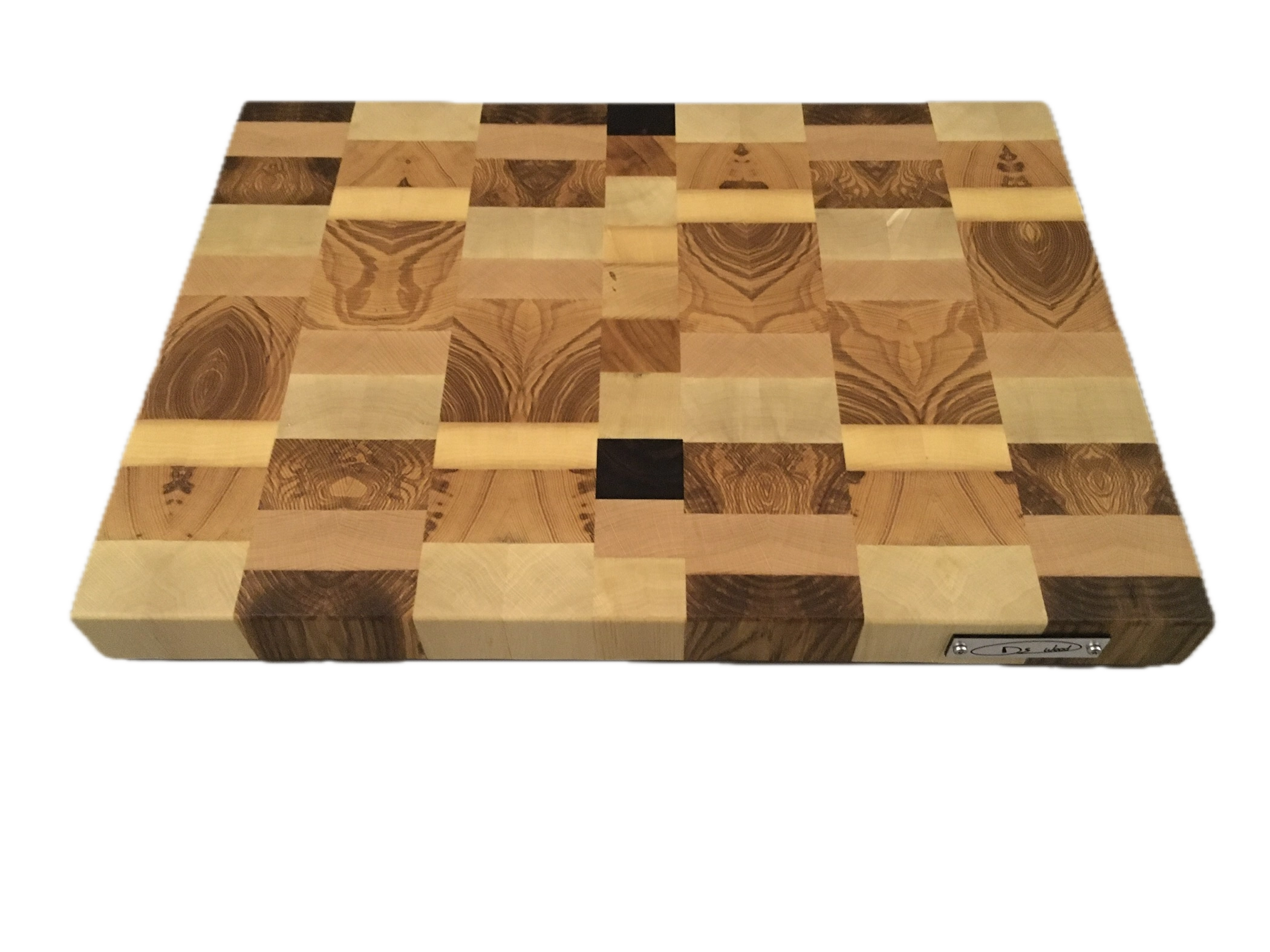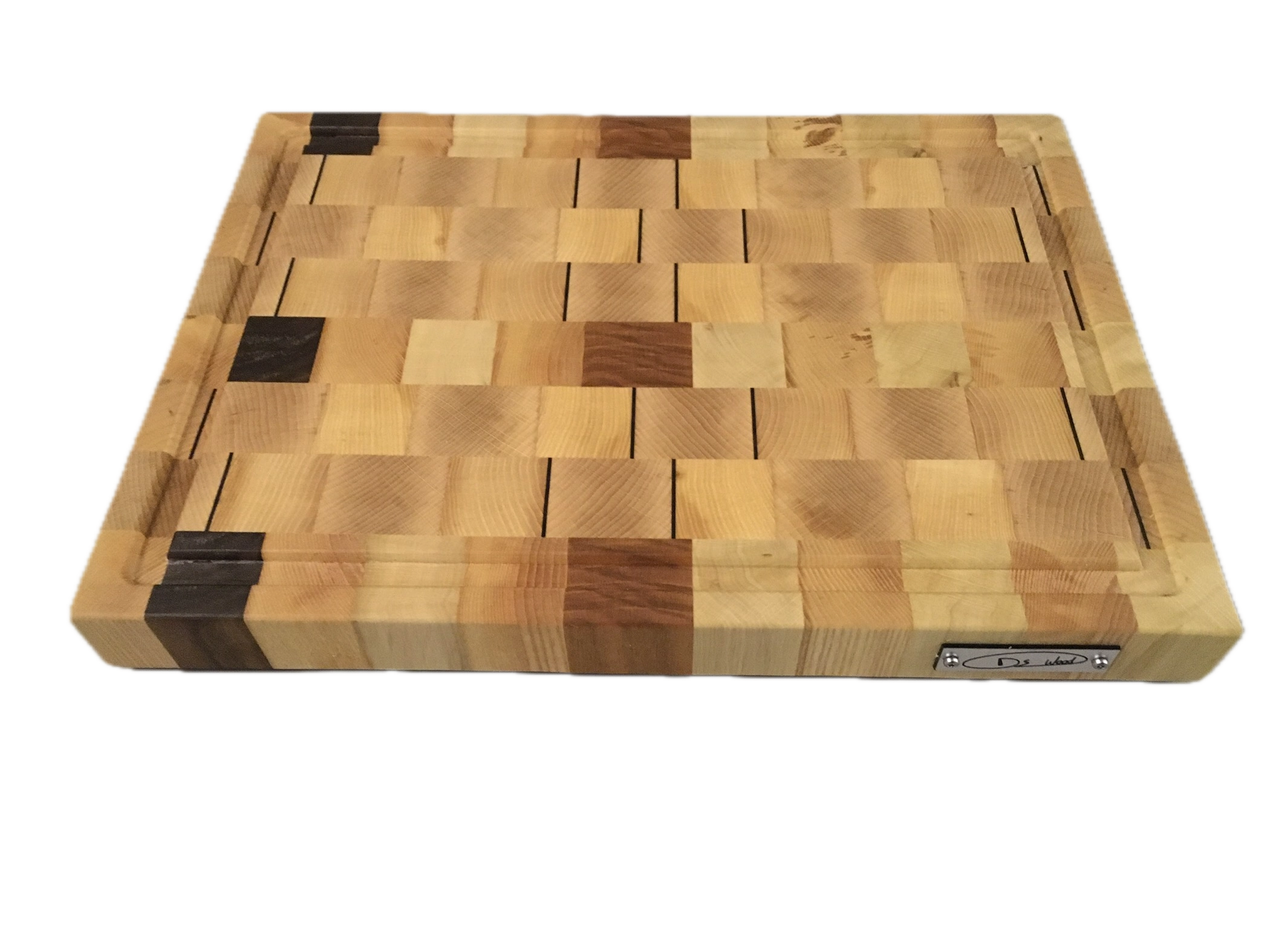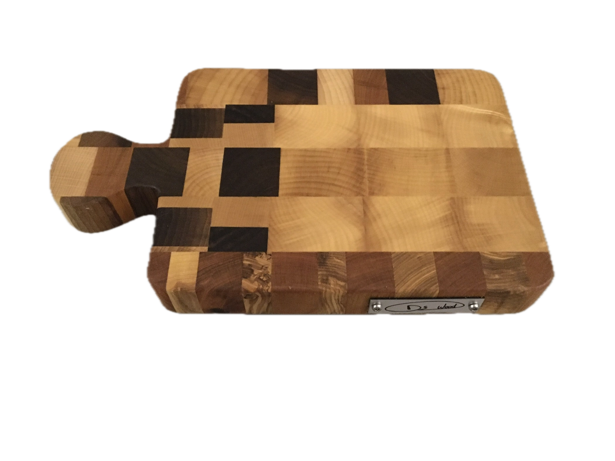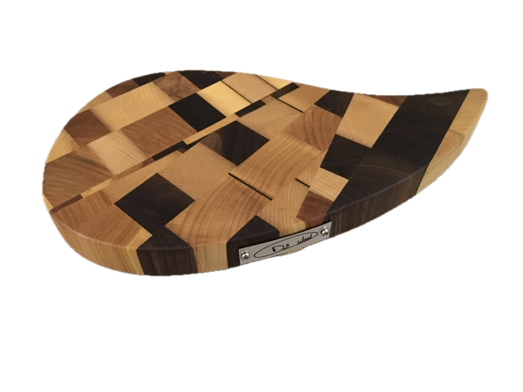 Pièce unique façonnée à la main en Alsace. Assemblage 5 essences (hêtre, frêne, charme, cerisier, noyer noir et filet de marqueterie) avec finitions naturelles.