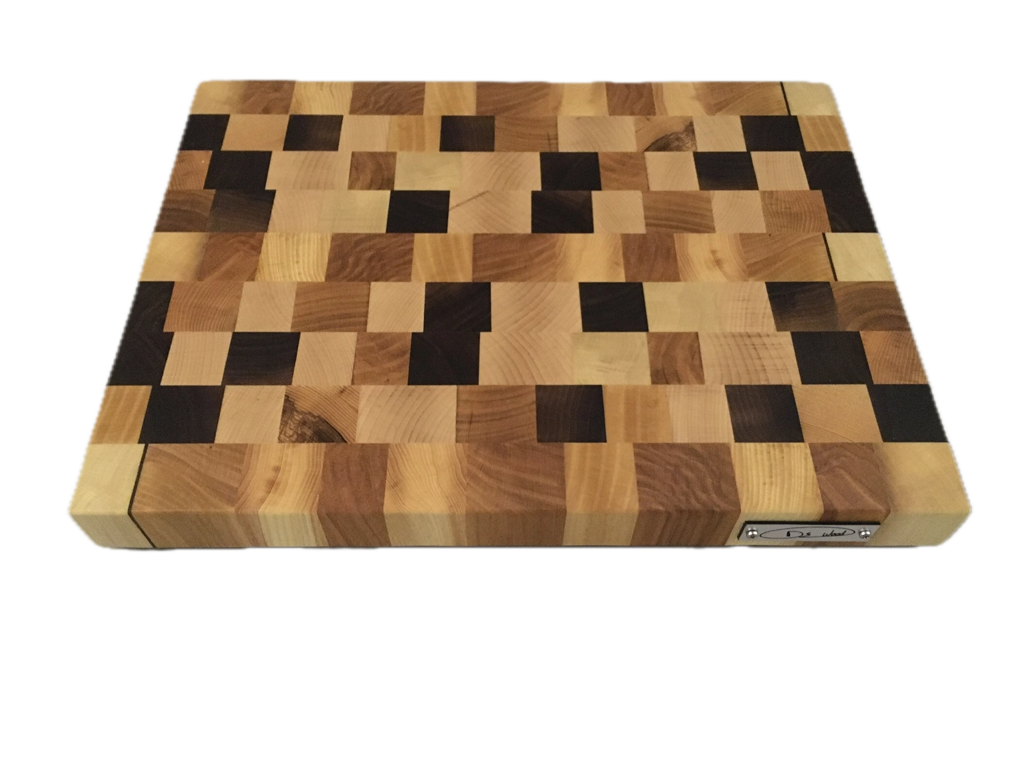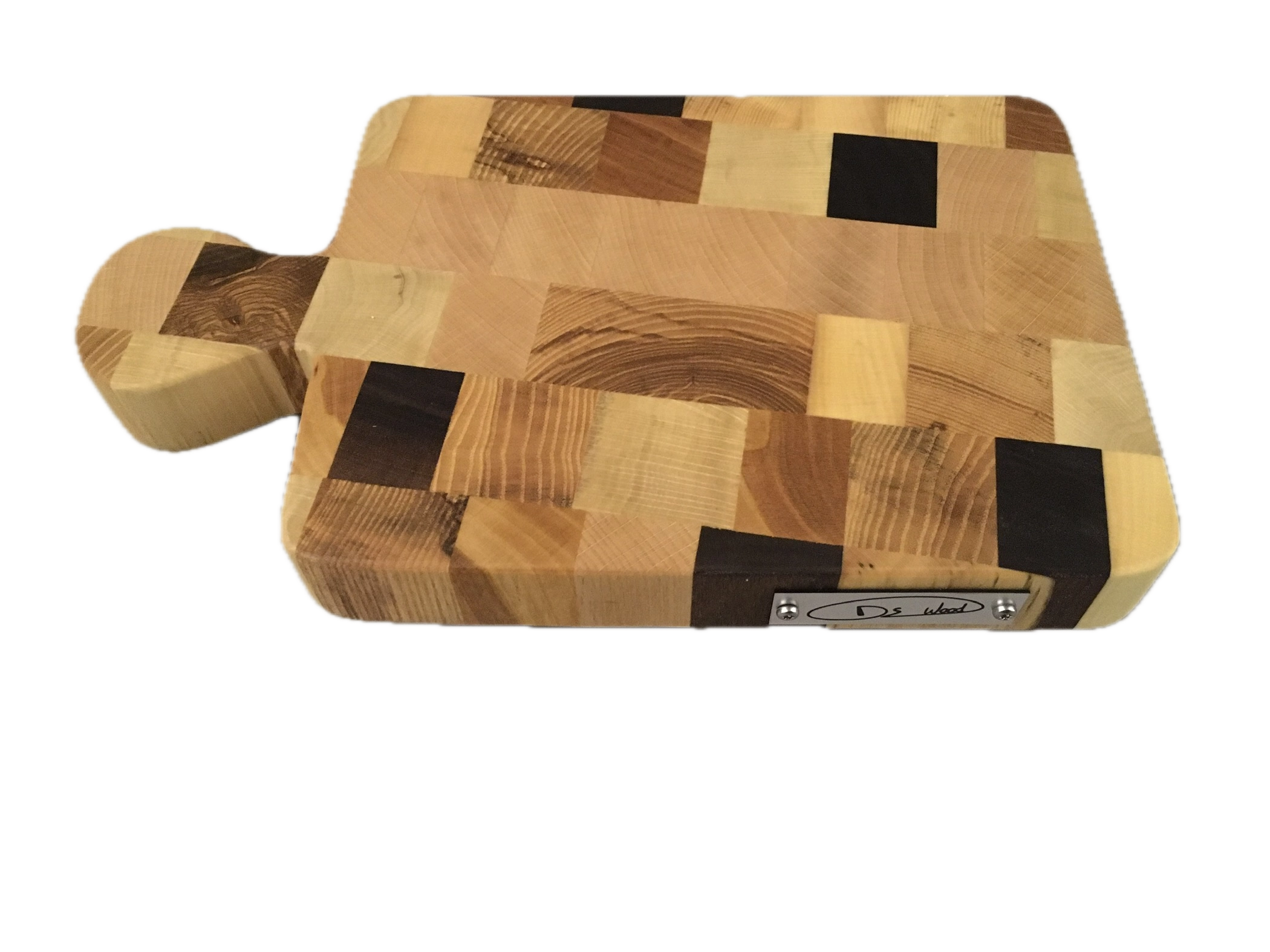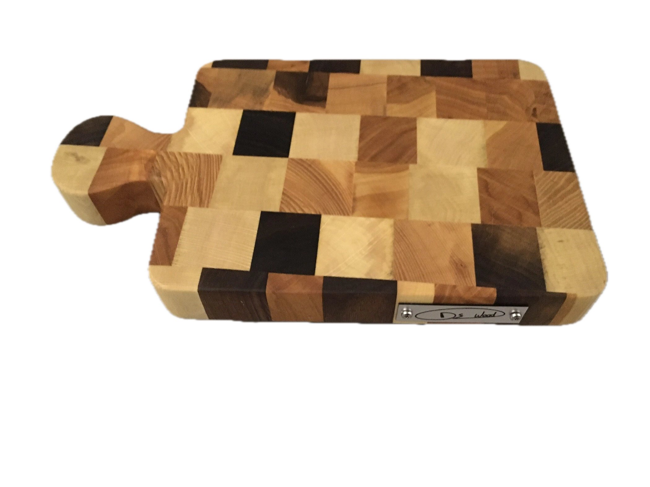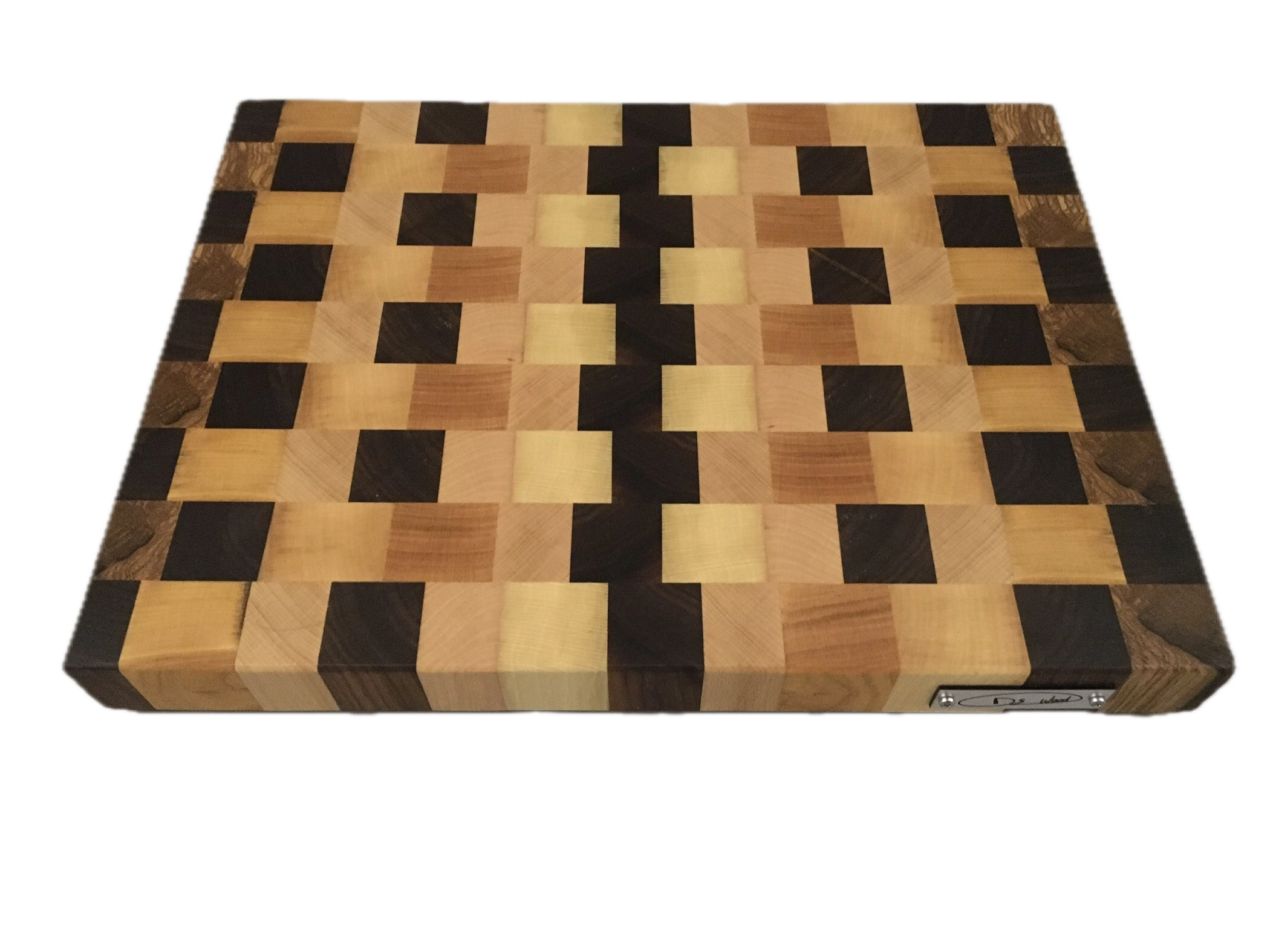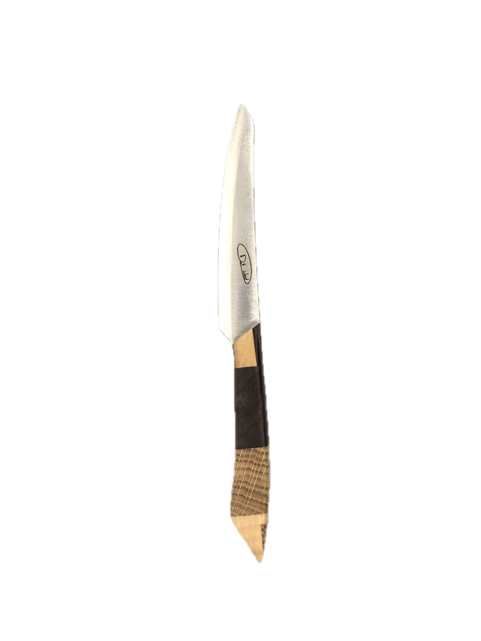 Pièce unique façonnée à la main en Alsace. Assemblage 5 essences (hêtre, frêne, charme, cerisier, noyer noir et filet de marqueterie) avec finitions naturelles.