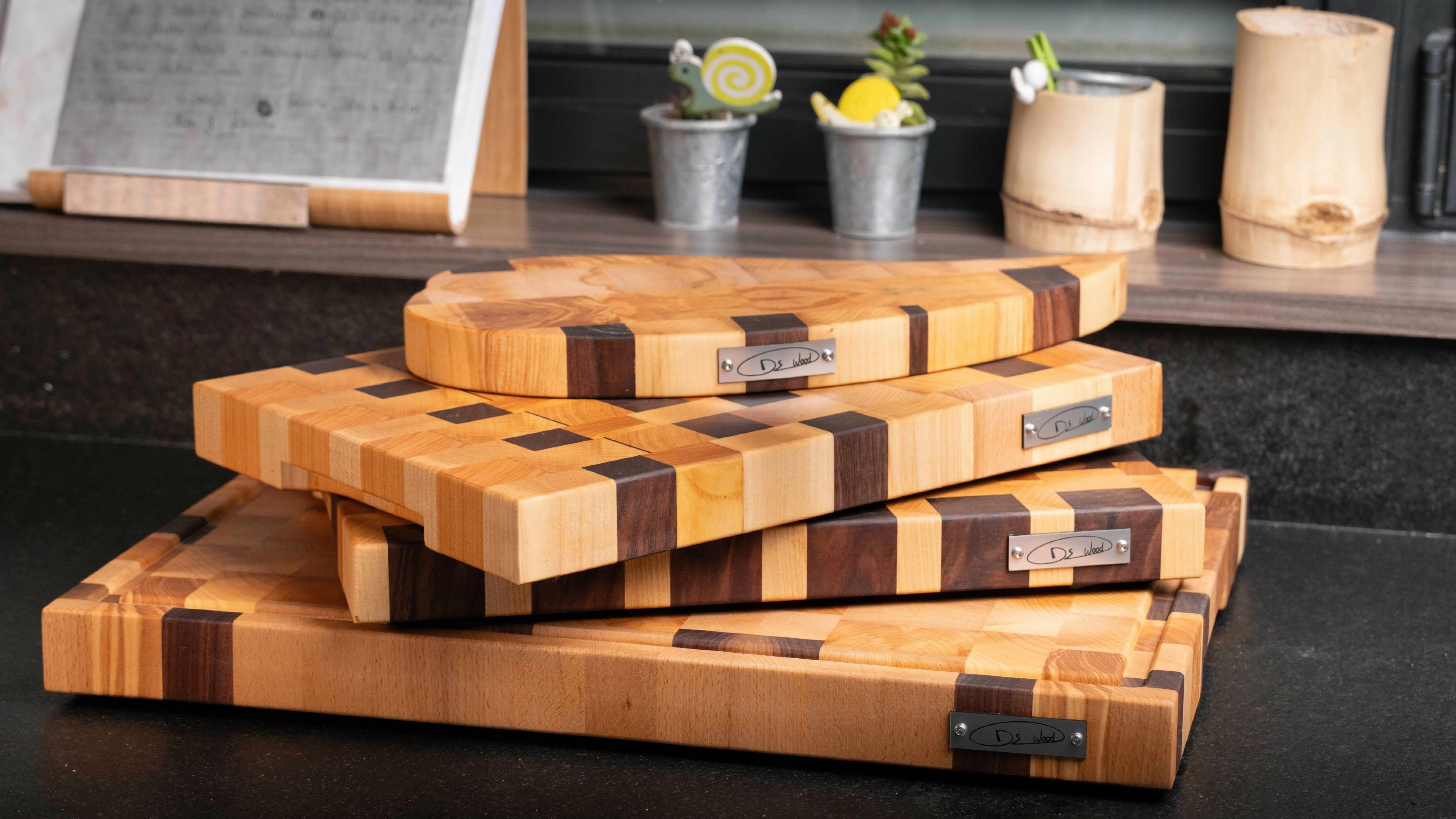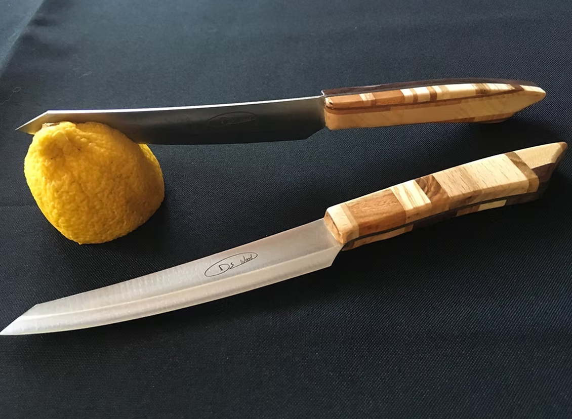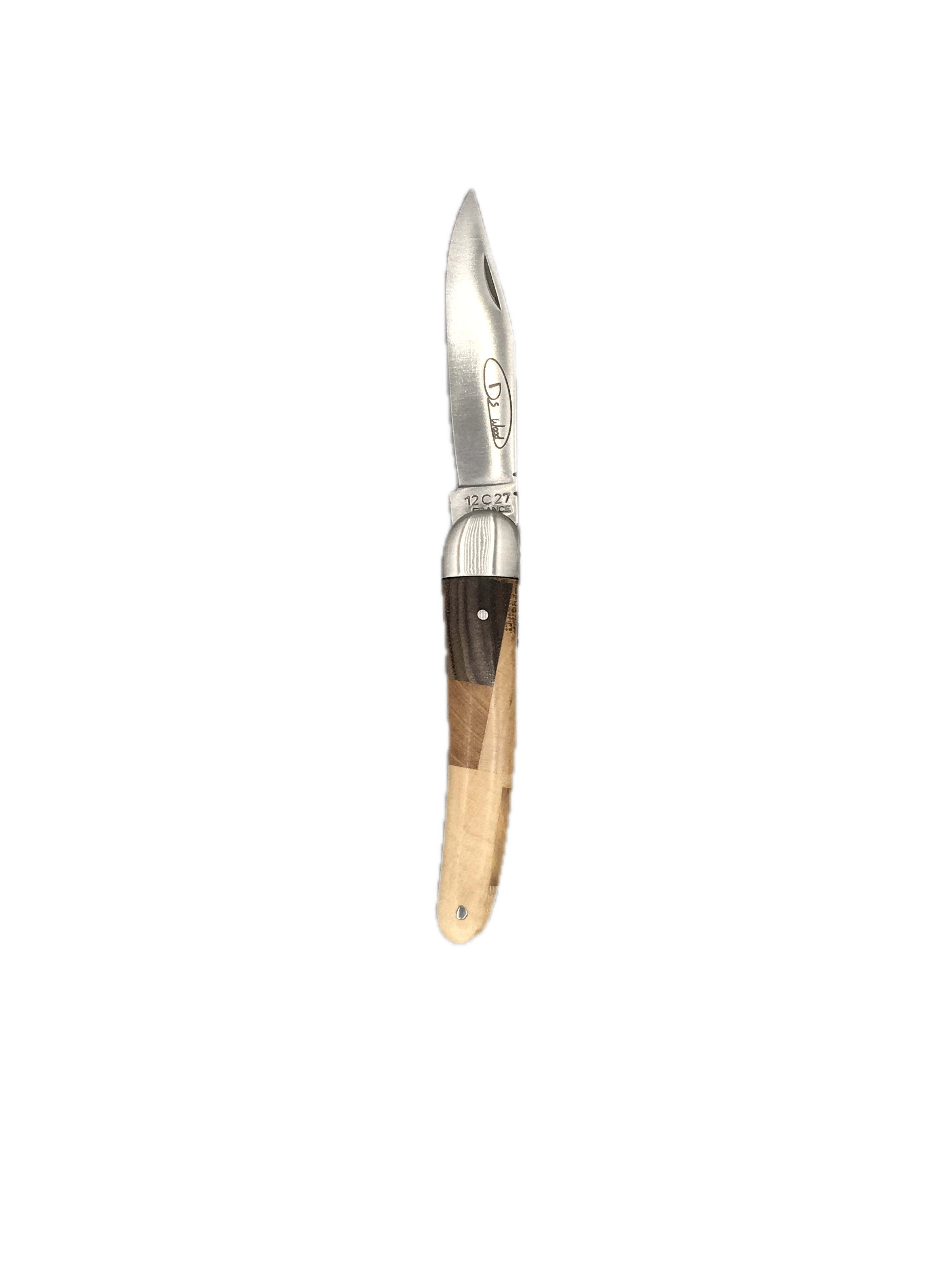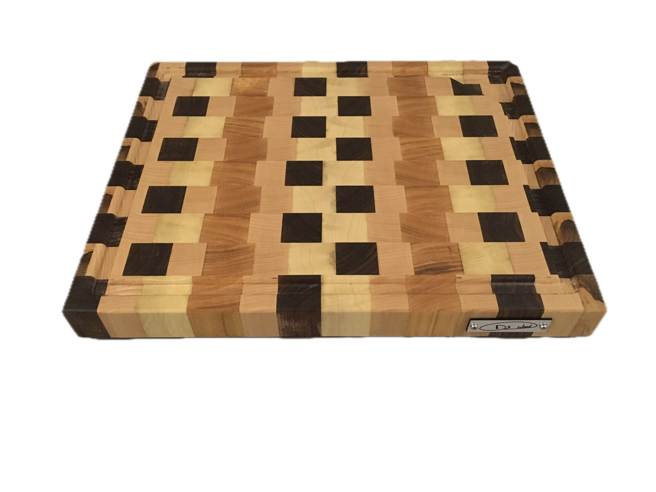 Pièce unique façonnée à la main en Alsace. Assemblage 5 essences (hêtre, frêne, charme, cerisier, noyer noir et filet de marqueterie) avec finitions naturelles.