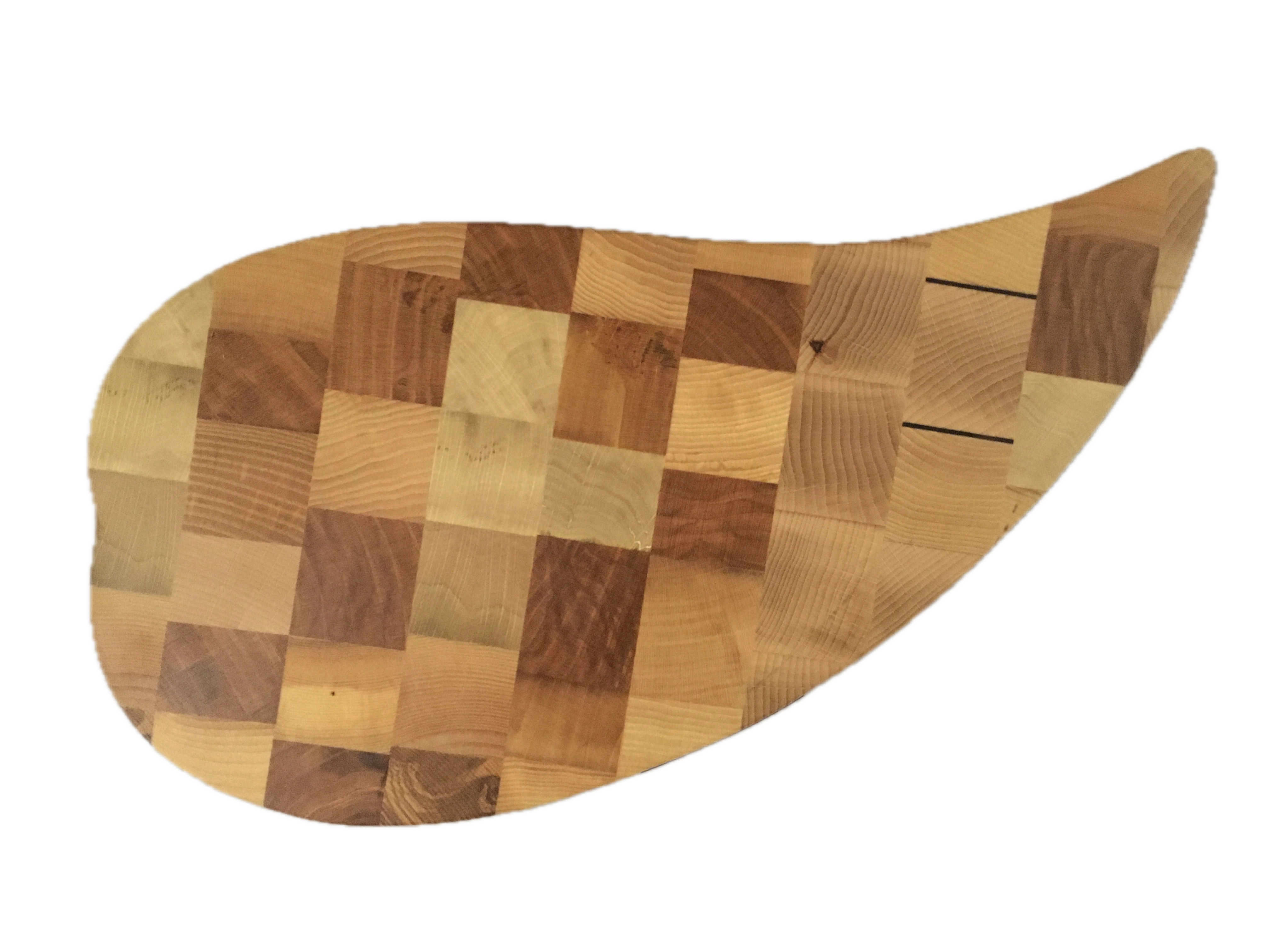 Planchette à découper artisanale en bois de bout, réalisée à la main en Alsace. Assemblage harmonieux de 5 essences locales, hêtre, frêne, charme, cerisier et filet de marqueterie de noyer noir. Finitions naturelles à base d’huiles végétales bio et de cire d’abeille. Dimensions 38 × 19 × 3 cm – environ 1,1 kg. Après votre commande, ne prenez pas peur… je vous appelle !