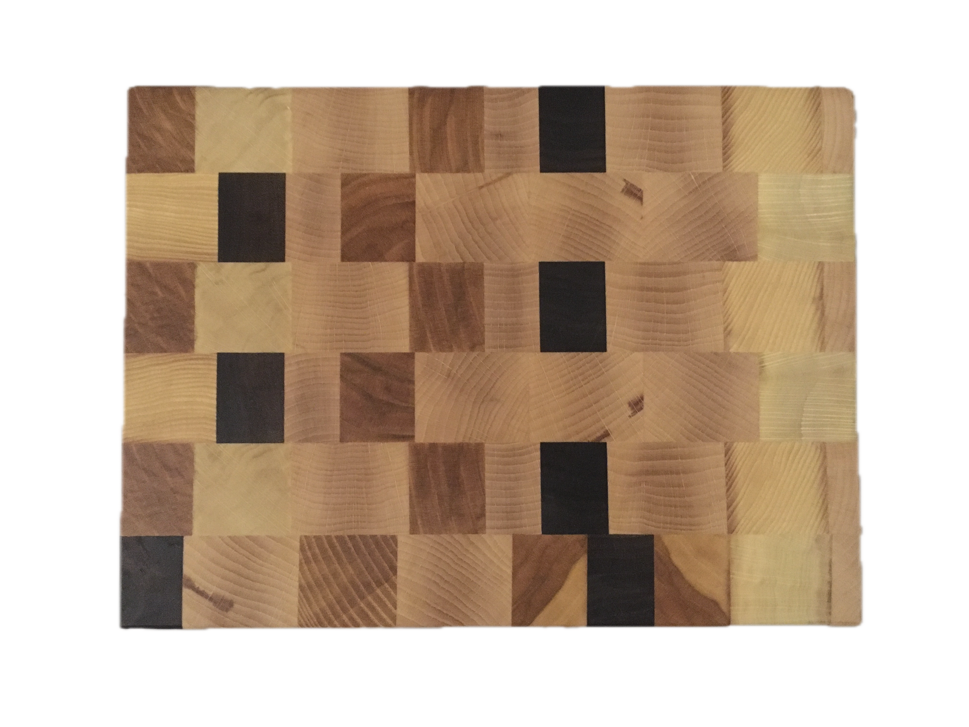 Conçue en bois de bout pour préserver durablement le tranchant de vos couteaux, cette planchette associe hêtre, frêne, charme, cerisier et noyer noir dans un assemblage soigné.