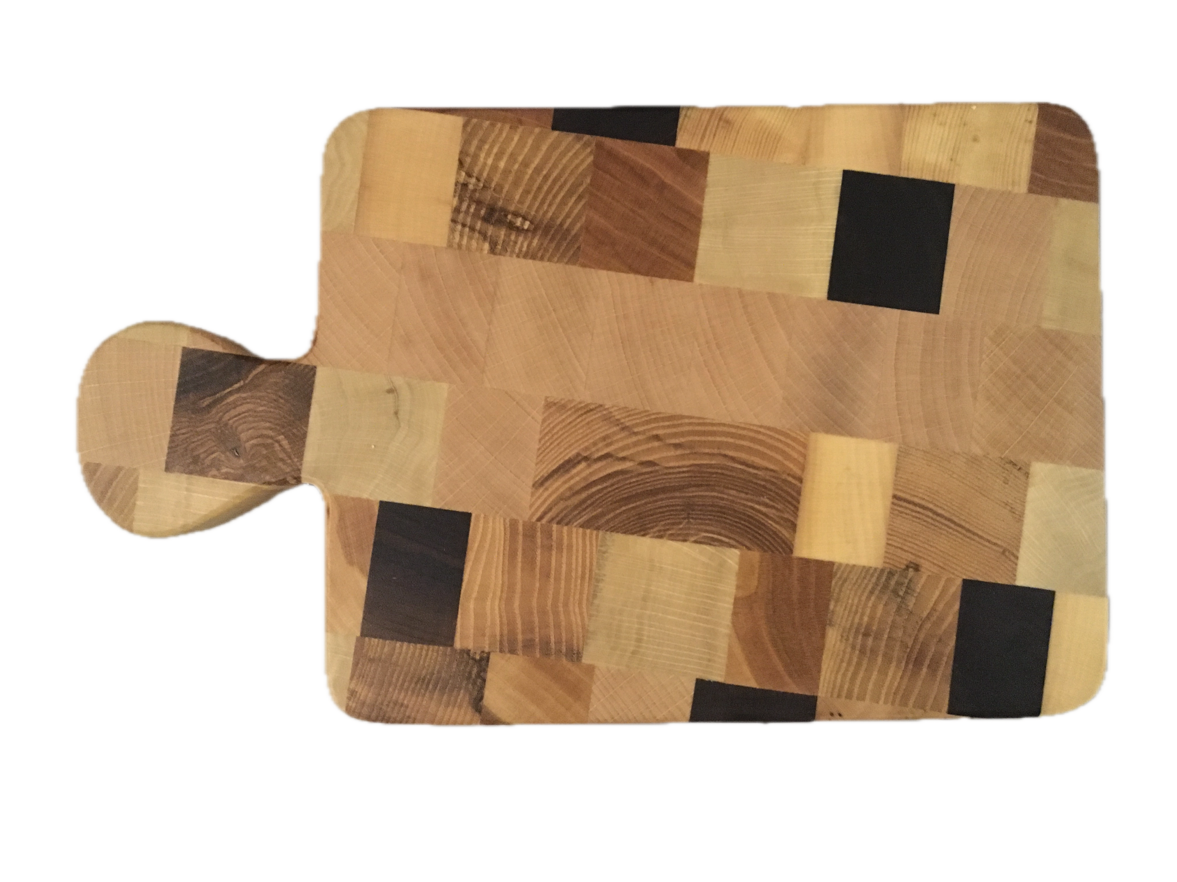 Planchette à découper artisanale en bois de bout, réalisée à la main en Alsace. Assemblage harmonieux de 6 essences locales, érable, hêtre, frêne, charme, cerisier et noyer noir. Finitions naturelles à base d’huiles végétales bio et de cire d’abeille. Dimensions 28 × 18 × 3 cm – environ 870 g. Poignée intégrée pour une manipulation confortable et sécurisée. Après votre commande, ne prenez pas peur… je vous appelle !